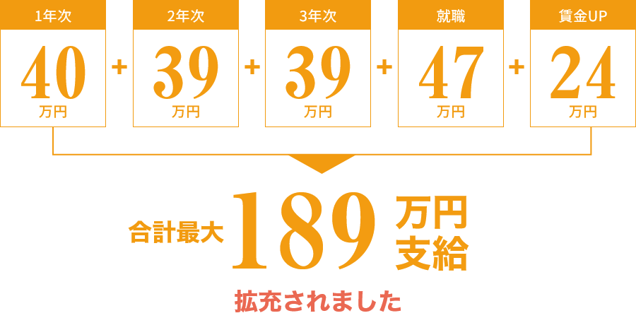 「専門実践教育訓練給付制度」とは、ハローワークによる、社会人のキャリアアップを支援するための給付金制度です。一定の条件を満たす方が、厚生労働大臣の指定をする教育訓練講座を受講し修了した場合、本人が支払った経費の一部がハローワークから支給されます。当校の場合、最大189万円支給されます。