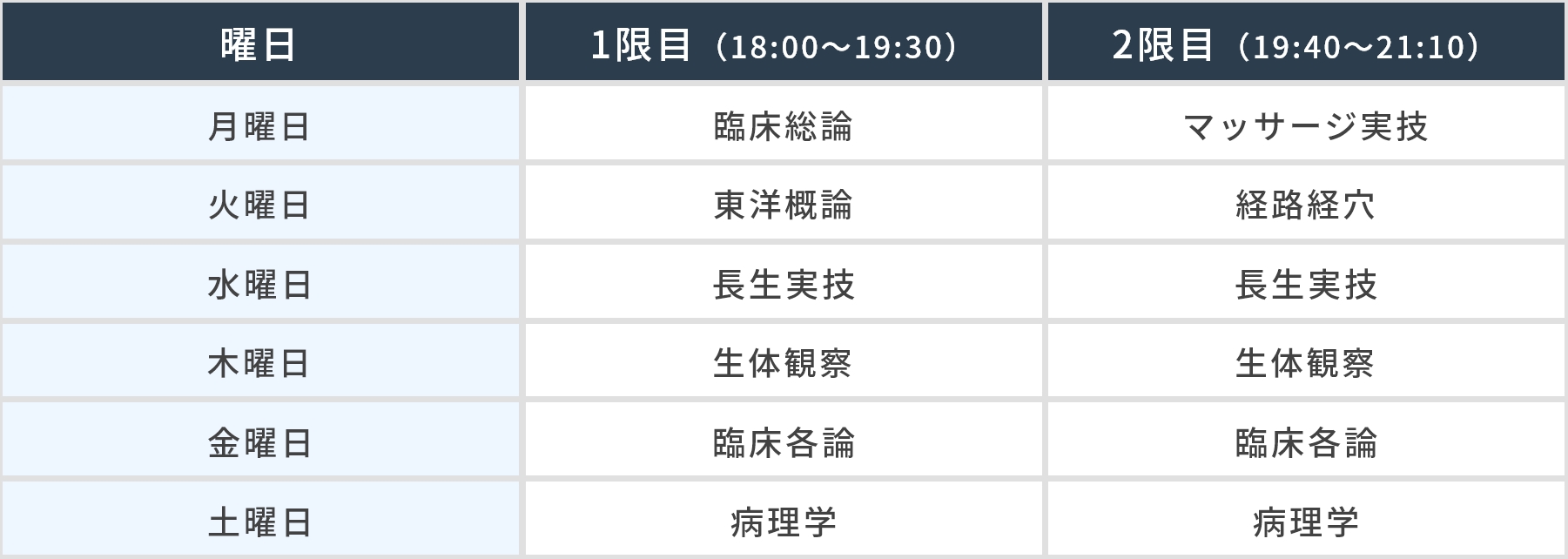 • ※授業日、授業時間外に、臨床実習・学校行事を実施することがあります。