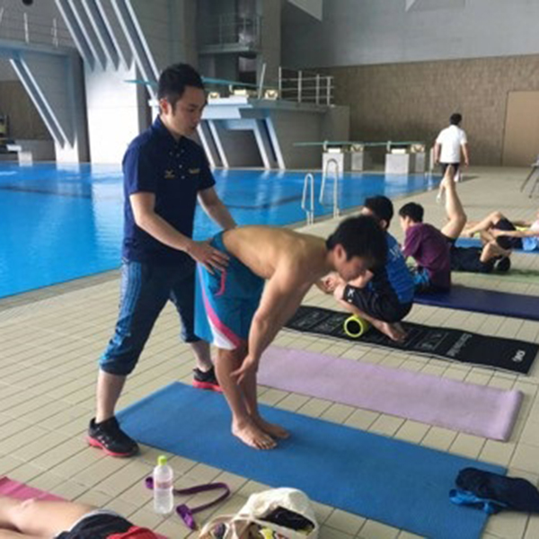 以前は、筑波大学硬式野球部トレーナー、飛込競技の岐阜県代表トレーナーなどをしていました。現在は、水泳の飛込競技のトレーナーがメインで、筑波大学と茨城県の代表トレーナーをしていたり、世界で活躍するプロのスポーツ選手のサポートもしています。
